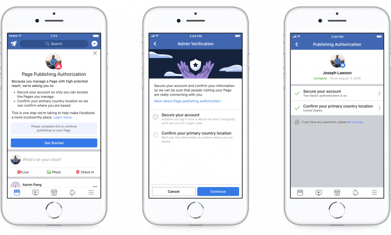 Facebook announced they would require further verification from administrators of popular Facebook pages in the United States. The move is done to ensure an unwanted third party does not run Facebook pages. The “Page Publishing Authorization” will require a Page manager to set up two-factor authentication to secure their account. The manager will also need to verify his location. If the manager does not follow through with the new policy, he will not be able to add posts to the page until the authorization is submitted.