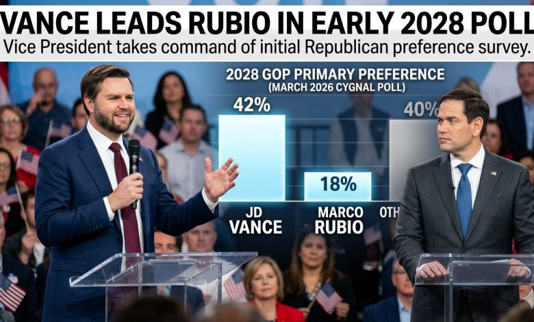 A new survey conducted by Cygnal reveals that Vice President JD Vance holds a significant lead over Senator Marco Rubio among Republican voters looking toward the 2028 presidential cycle. The poll, released on March 28, 2026, indicates that 42% of GOP primary voters favor Vice President JD Vance, while Senator Marco Rubio maintains 18% support.