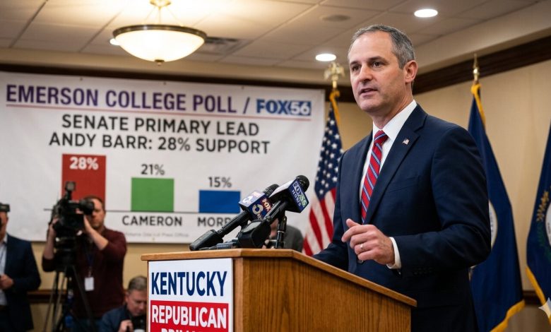 U.S. Representative Andy Barr (R-Ky.) currently leads the Republican primary race to succeed retiring Senator Mitch McConnell, according to an Emerson College/FOX56 poll released Thursday.